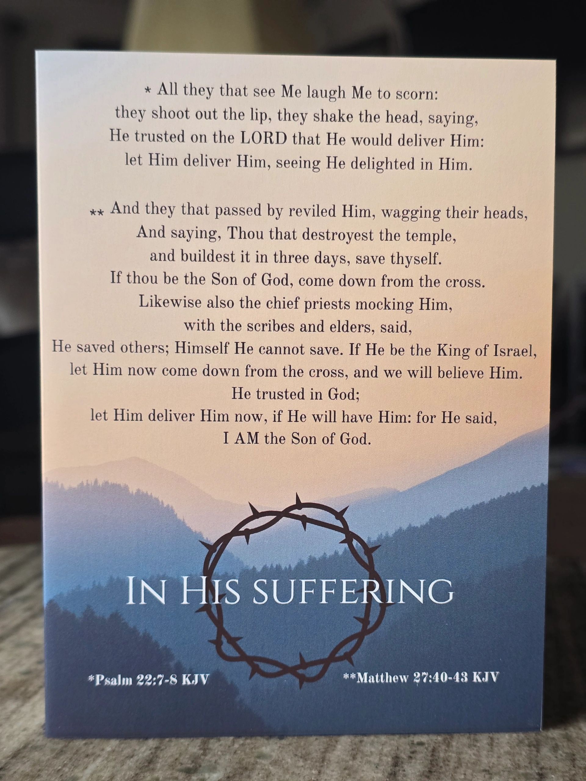 A great deal of thought goes into the product line and a continual reevaluation of stock keeps categories timely and relevant. With an eye towards personal outreach, the ultimate goal is to glorify God while encouraging your neighbor. Encourage friends or loved ones with a thoughtful remembrance. All Scripture references are taken from the King James Bible.
